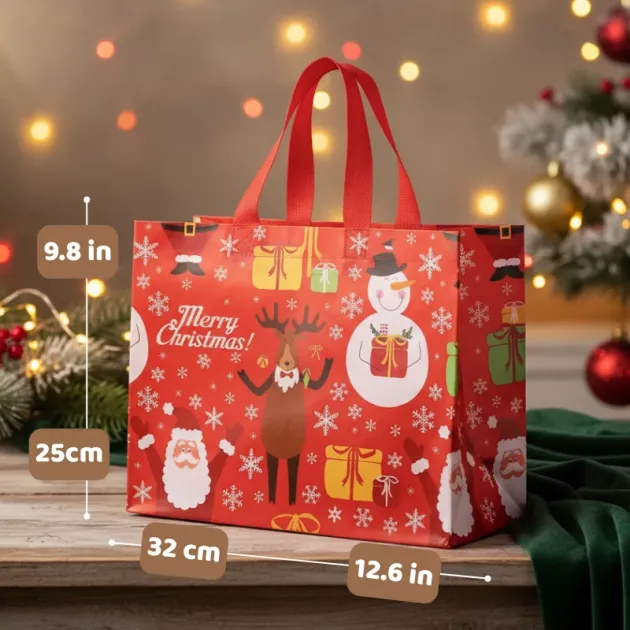 Helle Farben und fröhliche Muster bringen sofort festliche Stimmung. Das Verpacken von Geschenken wird für Sie einfacher und ordentlicher. Robuste Griffe sorgen dafür, dass das Tragen der Geschenke jedes Mal bequem ist.