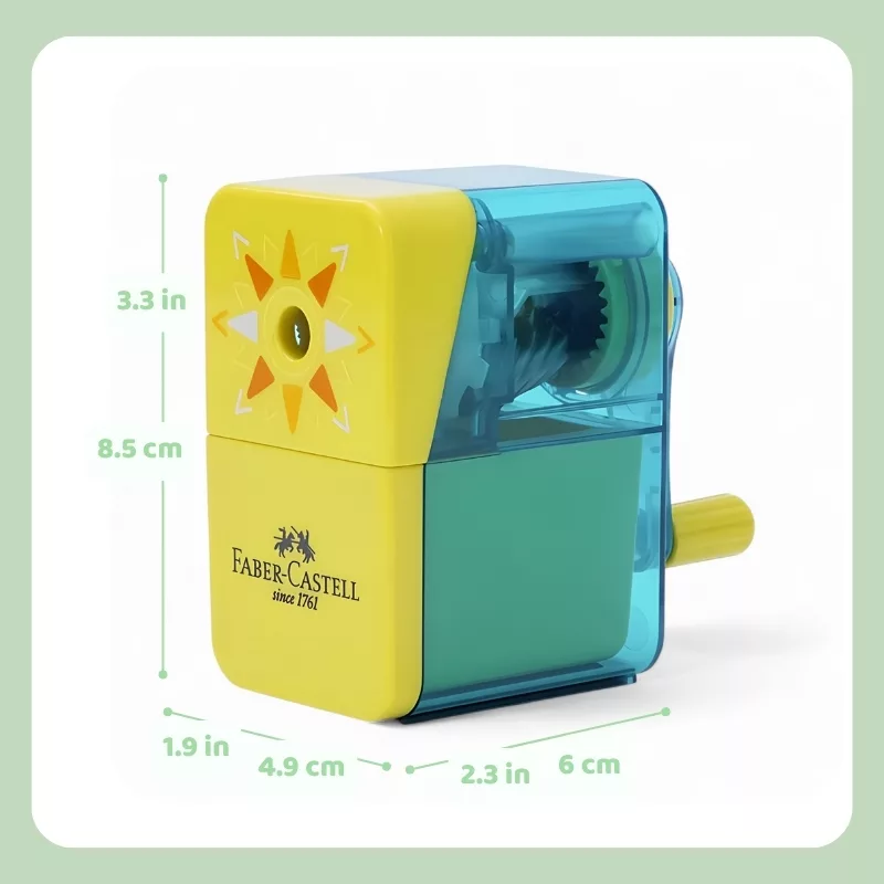 Super einfach zu kurbeln! Die Farben sind lustig und er klemmt nie. Meine Buntstifte bleiben scharf und ich mache keine Unordnung.
