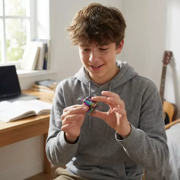 Beschäftigte Hände bleiben entspannt, während der Geist klar und fokussiert wird. Das einzigartige Design ermöglicht es Ihrem Kind, überall leise zu fidgetieren – zu Hause, in der Schule oder unterwegs. Jede Drehung ist geschmeidig, was die Konzentration erleichtert und Sorgen dahinschmelzen lässt.