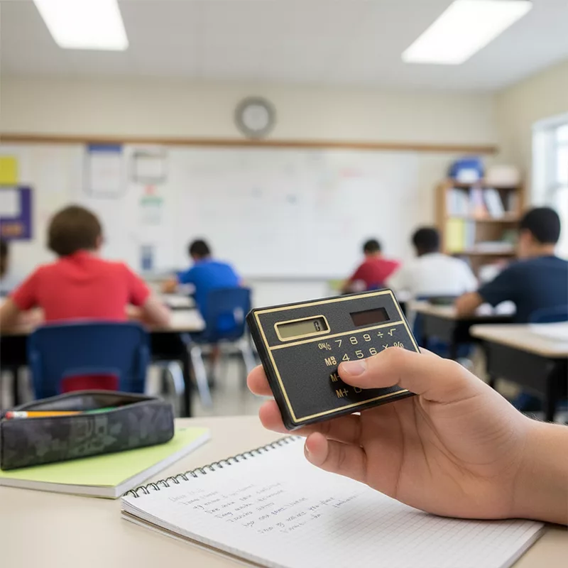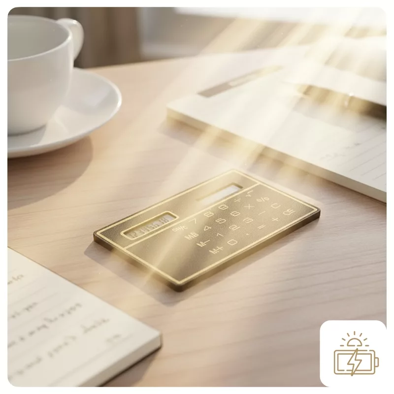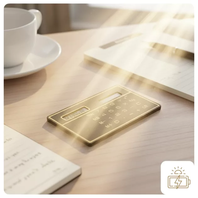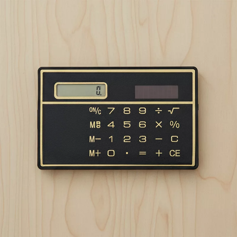 Dieser Taschenrechner ist wirklich praktisch. Passt in jede Tasche, nimmt keinen Platz weg und funktioniert, sobald Licht darauf fällt.
