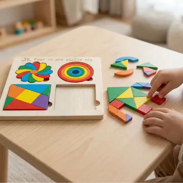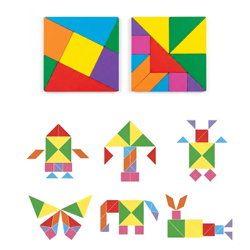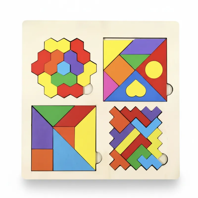 Das hölzerne Tangram ist zu unserem Standard-Geburtstagsgeschenk geworden. Eltern danken uns später, weil ihre Kinder damit beschäftigt sind, gemeinsam kleine Bilderrätsel zu lösen.