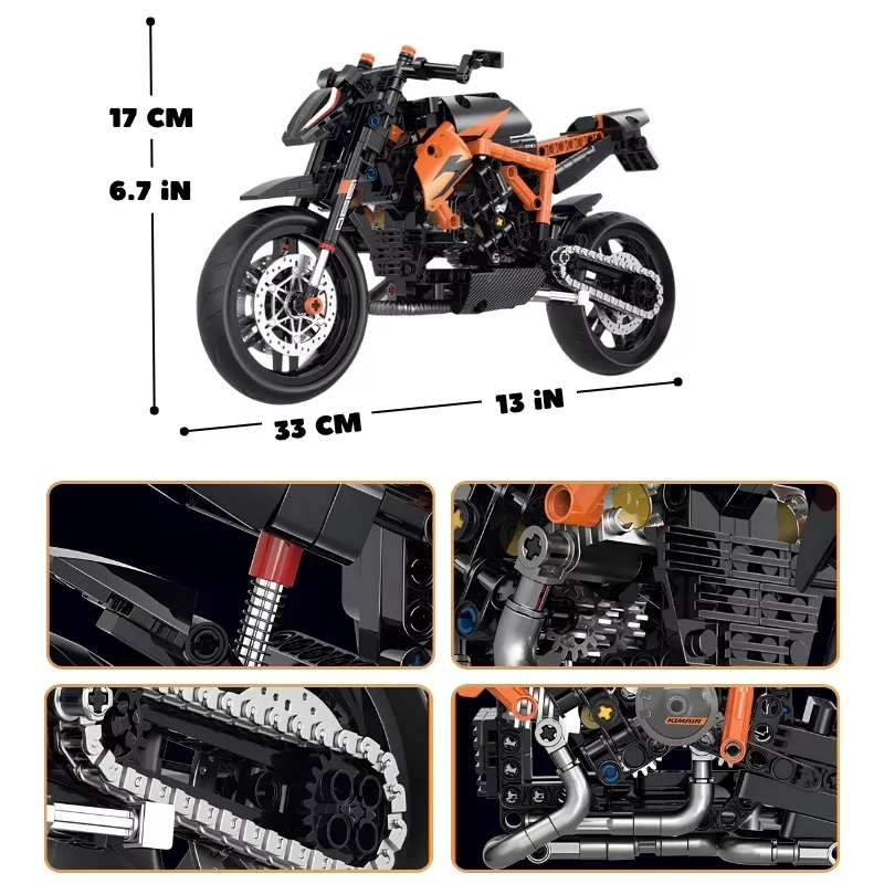 Die Anleitung war leicht zu befolgen und der Bau war nicht zu schwer. Ich liebe, wie echt das Motorrad aussieht, wenn es fertig ist.