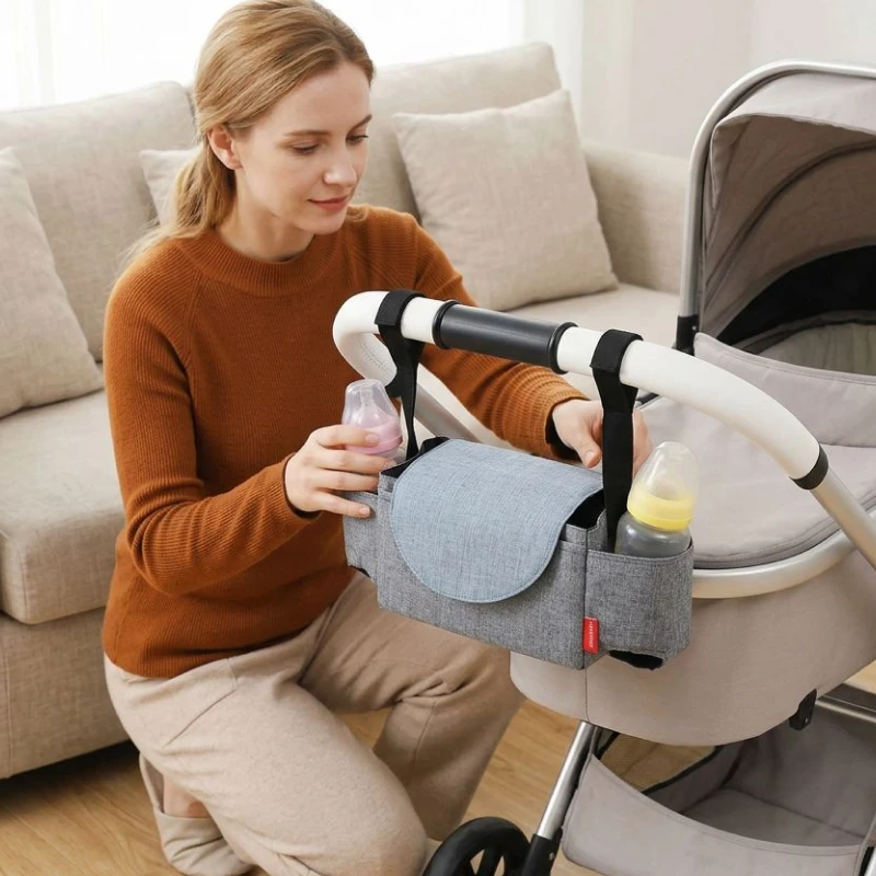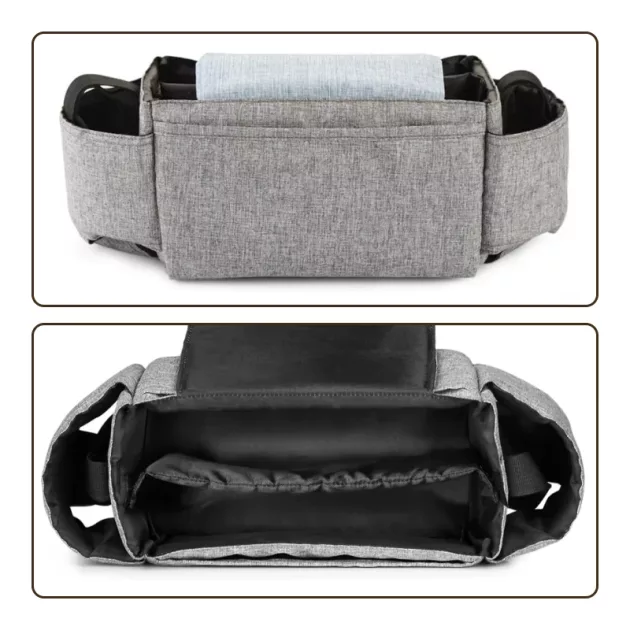 Genießen Sie Spaziergänge in dem Wissen, dass alle wichtigen Dinge ordentlich und griffbereit bleiben. Feuchttücher, Snacks und Flaschen immer dabei, nie wieder suchen oder herumkramen. Alles passt perfekt, sodass Ihr Kind jedes Abenteuer genießen kann. Eltern können sich entspannen, weil jeder Gegenstand immer seinen Platz hat.