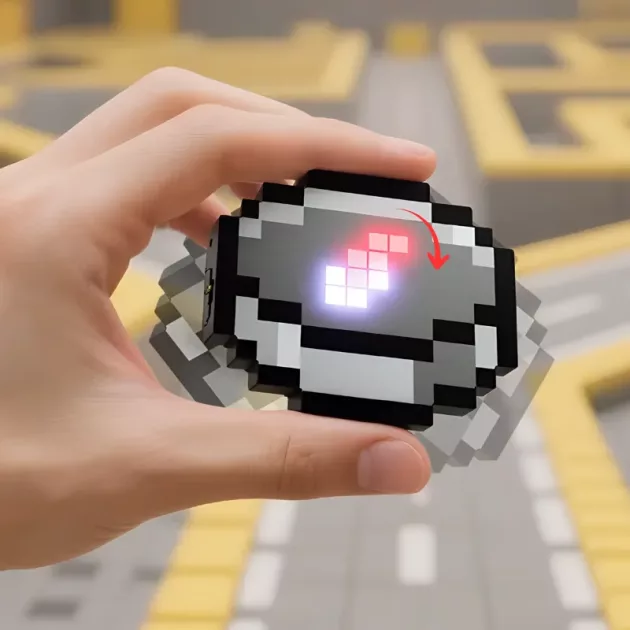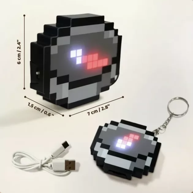 Ich hänge ihn jeden Tag an meinen Schulranzen. Super leuchtende Farben! Ich liebe die Pixelblöcke. Ich lade ihn sogar bei meiner Oma mit dem Tabletkabel auf.