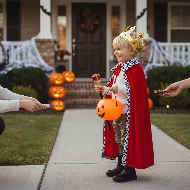 Halloween war ein voller Erfolg! Mein Kind bekam so viele Komplimente für ihren roten Umhang und die goldene Krone. Es war leicht zu tragen und hielt sie beim Süßigkeitensammeln warm.