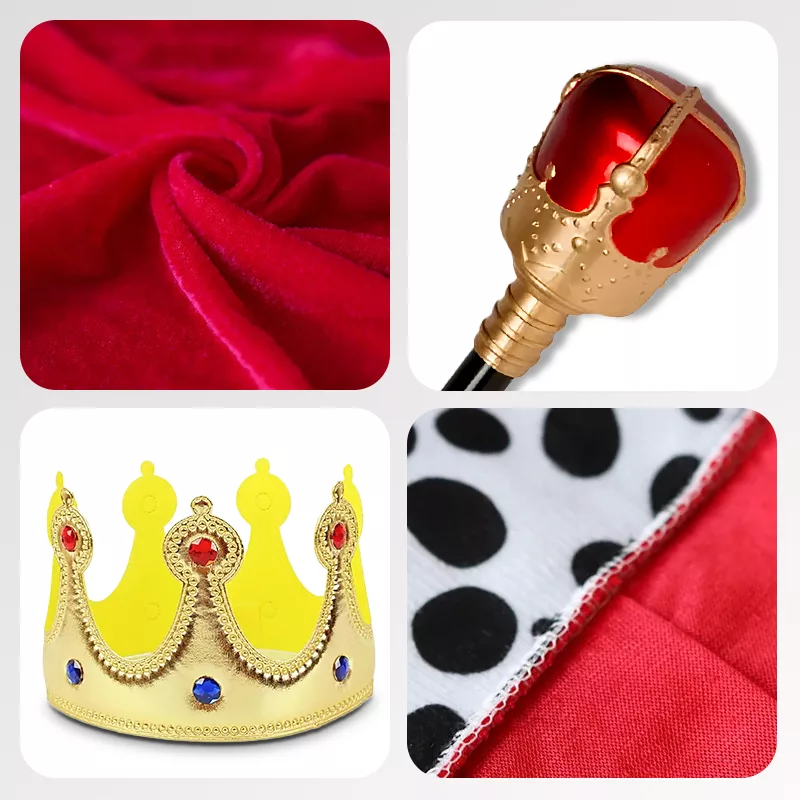 Mein Sohn trug das Königskostüm zu Halloween und wollte es nicht mehr ausziehen. Der weiche, samtige Umhang ließ ihn den ganzen Abend großartig und super königlich fühlen.