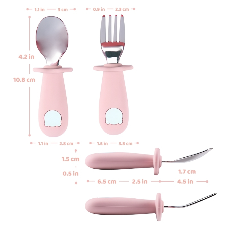 Tolle Löffel und Gabeln! Sie haben die motorischen Fähigkeiten meines Sohnes verbessert. Ich schätze, wie einfach sie zu reinigen und zu pflegen sind.
