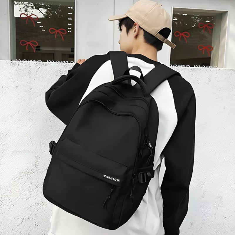 Der Rucksack fasst alles, was ich brauche, sogar meine Brotdose und meinen Pullover, und er fühlt sich nie zu schwer auf meinem Rücken an.
