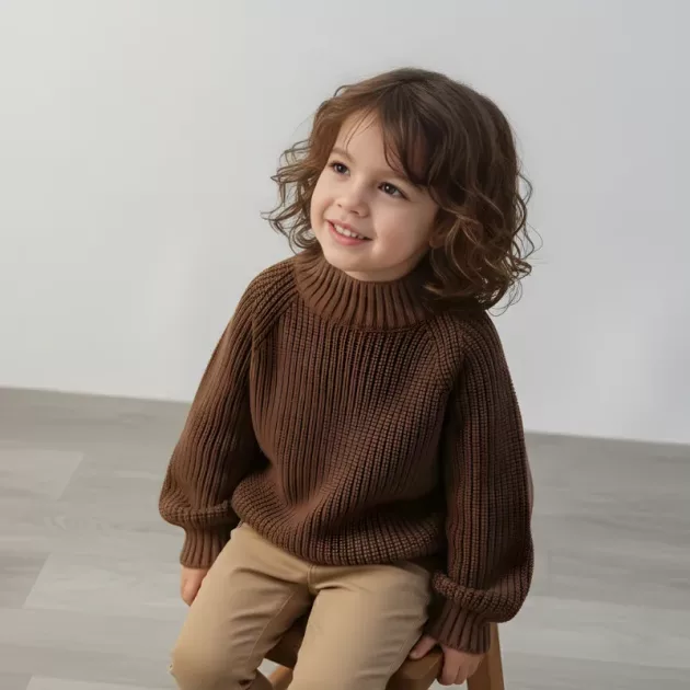 Stylischer, übergroßer Strickpullover – Warmer Rollkragenpulli für Kinder