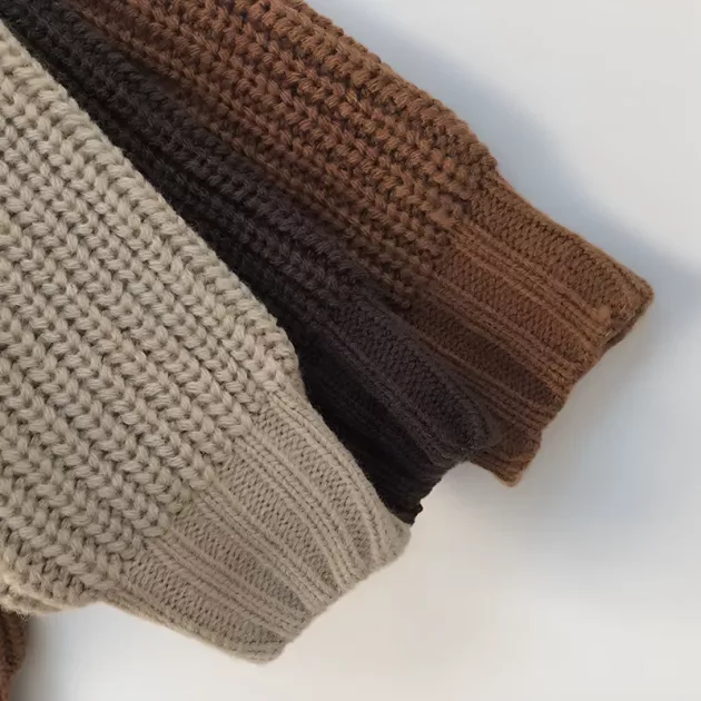 Wir haben den beigen Pullover genommen und er passt zu allem im Kleiderschrank meines Kindes. Das Anziehen für die Schule geht jetzt viel schneller.