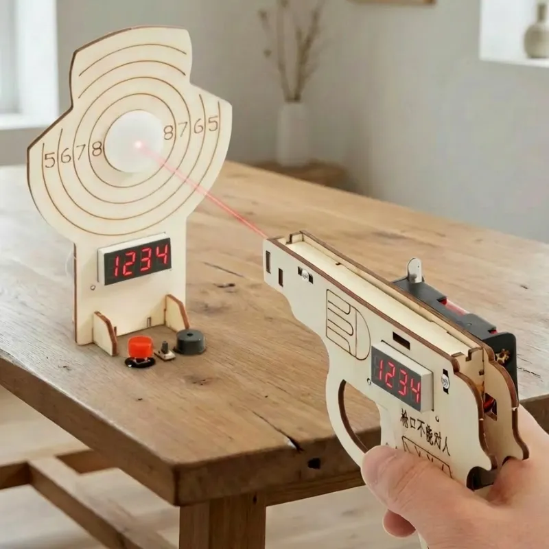 Die Holzpistole war eine coole Herausforderung nach der Schule. Die Farben sind leuchtend und sicher. Ich habe gelernt, Anleitungen zu folgen, und es hat mich sinnvoll beschäftigt.