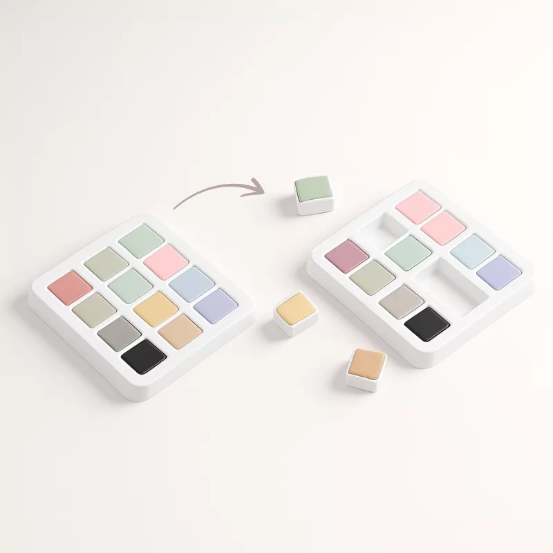 Ich habe einen Regenbogen gemalt und war überrascht, wie leuchtend er geworden ist. Bleibt nach dem Trocknen lebendig und nimmt kaum Platz in meiner Tasche weg.