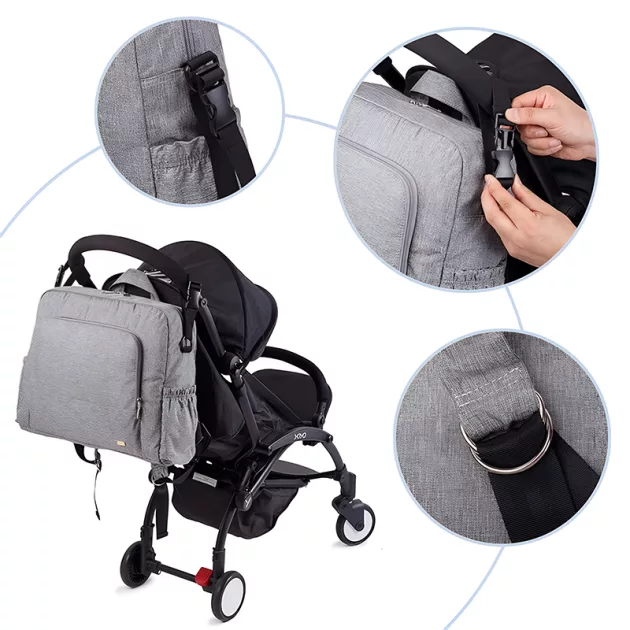 Vielseitiges Tragen - Die Tasche lässt sich leicht am Kinderwagen befestigen oder über der Schulter tragen. Genießen Sie Bewegungsfreiheit und haben Sie das Nötigste immer griffbereit.
