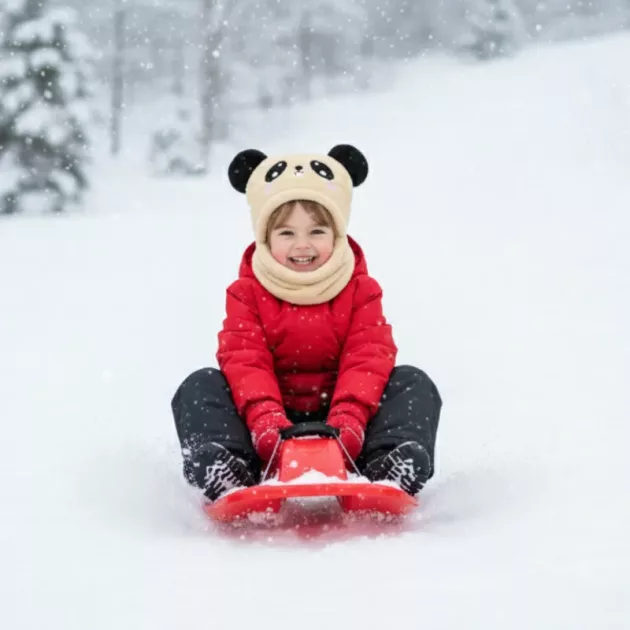 Das lustige Panda-Design motiviert mein Kind, sich anzuziehen. Und sie sitzt eng genug für Rodeltage.