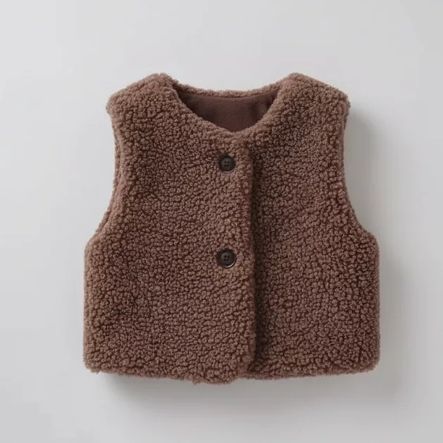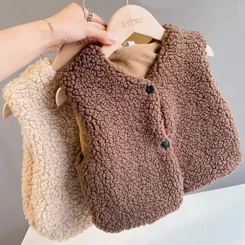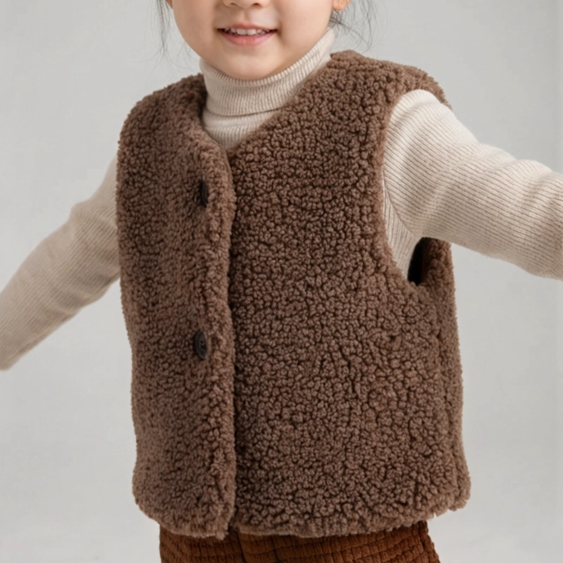 Warme Winter-Lammwollweste für Kinder mit Knöpfen