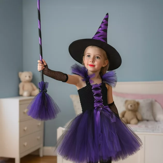 Mein Kind hat es auf einer Halloween-Party in der Schule getragen und alle waren begeistert! Sie hat den Besen tagelang behalten und das Kleid sieht nach dem Waschen immer noch aus wie neu.
