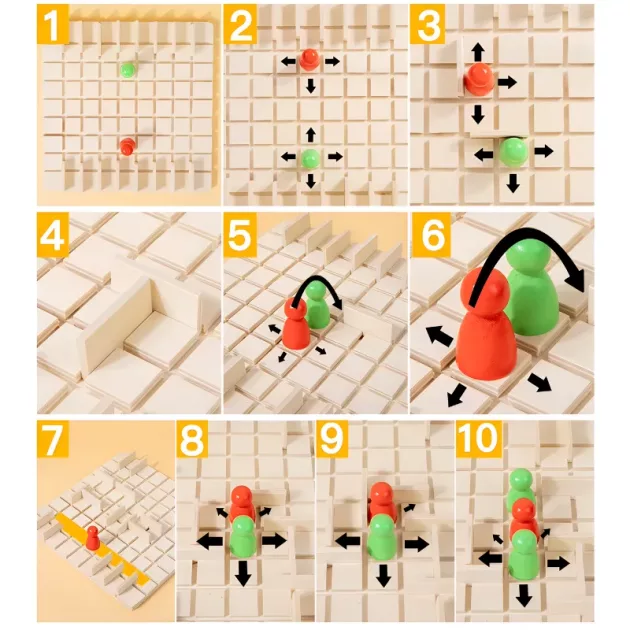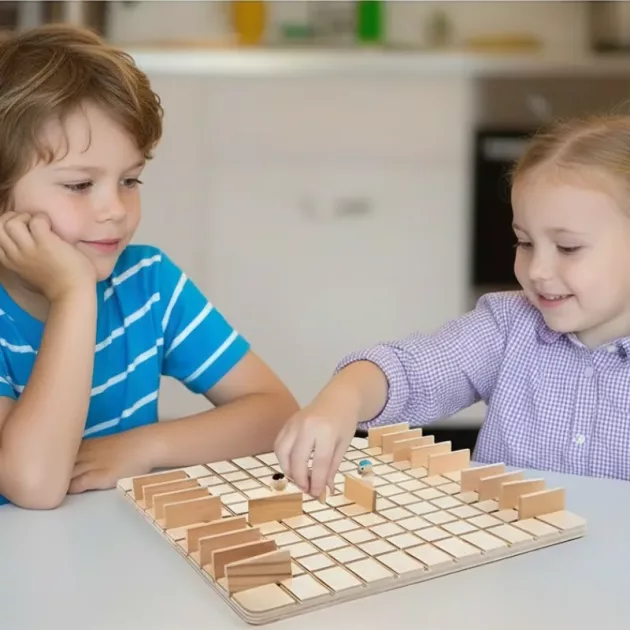 Fordere junge Köpfe jeden Tag mit diesem fesselnden Korridor-Spiel heraus. Die Holzfiguren fühlen sich sicher, glatt und angenehm in kleinen Händen an. Mache jede Spielzeit zu Qualitätszeit, die clevere Züge und fröhliche Lächeln hervorbringt.