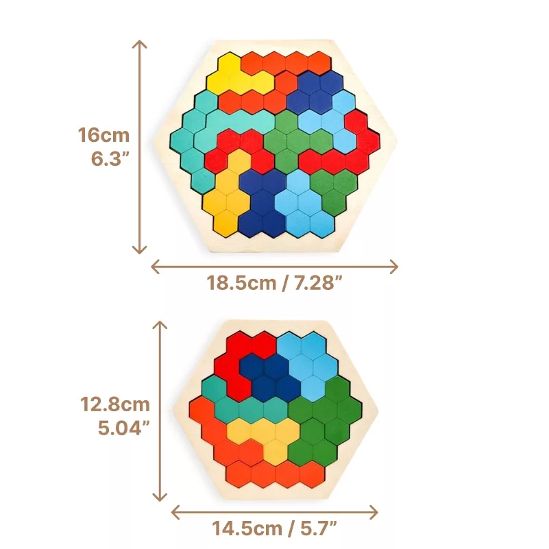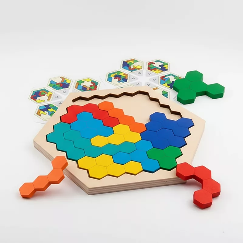 Das ist perfekt, um meinen Sohn zum Um-die-Ecke-Denken zu ermuntern. Er probiert immer neue Wege, die Honigwabe zu legen und wird nie müde davon.