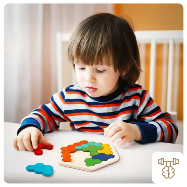 Kognitive Entwicklung - Herausfordernde Aufgaben fördern das logische Denken und stärken die Aufmerksamkeitsspanne. Das Lösen von Puzzles schärft die Konzentration und baut starke logische Fähigkeiten auf.