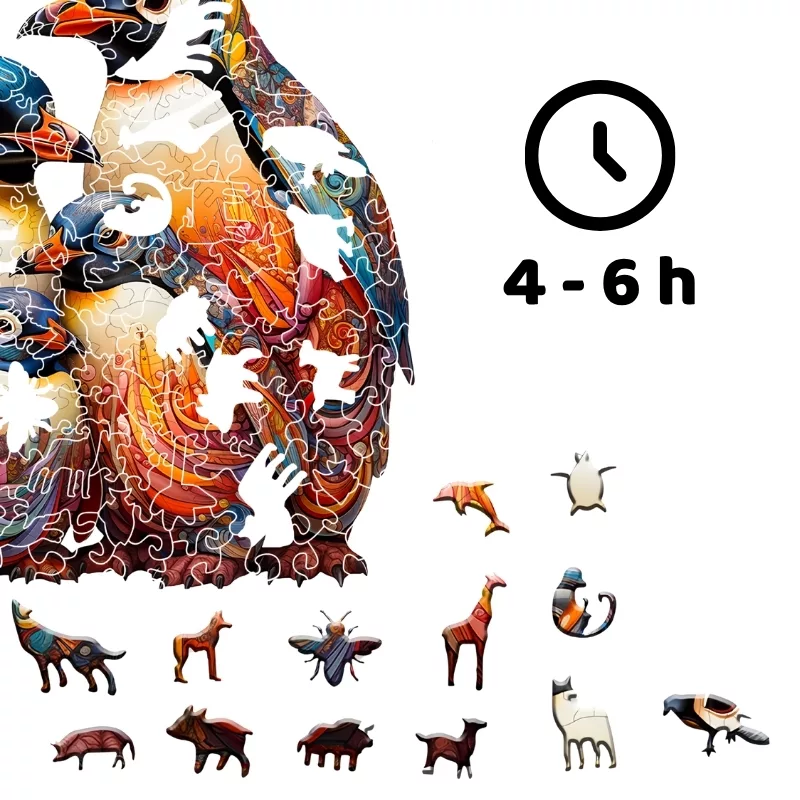 Bringen Sie alle zusammen für stundenlange, freudige Herausforderungen. Jedes Holzteile fördert die Konzentration, während die Hände beschäftigt bleiben. Beobachten Sie, wie die Kreativität wächst, wenn bunte Tierformen zu einem wunderschönen Pinguin werden. Genießen Sie jedes Mal Lachen und Lernen, wenn Sie die Box öffnen.