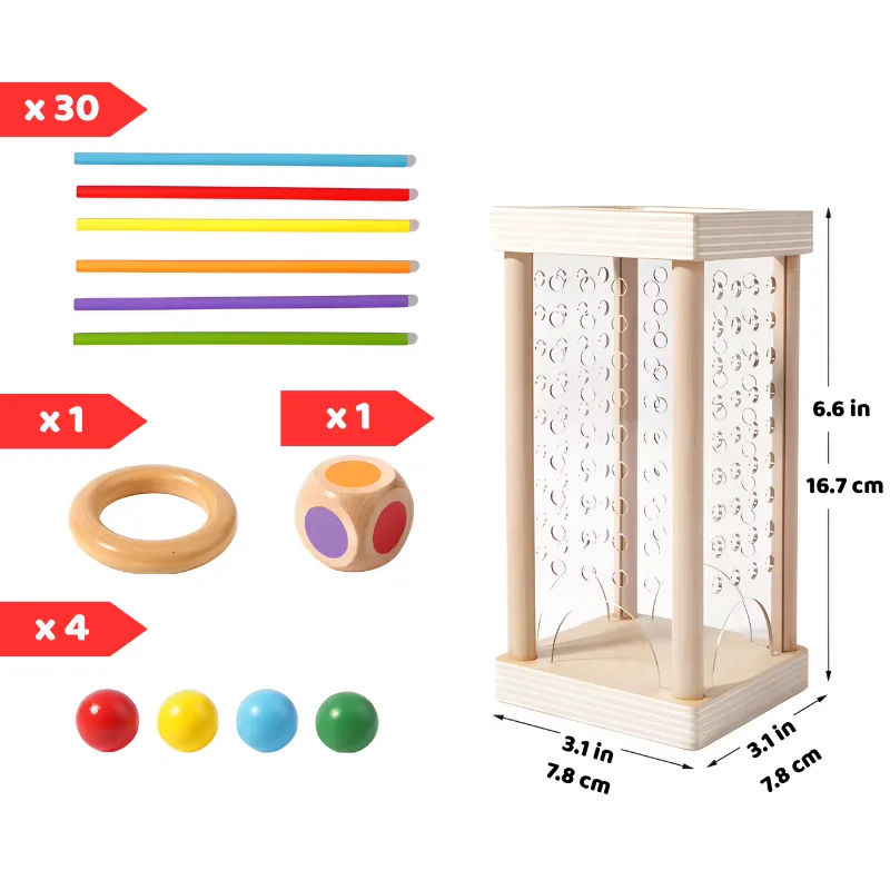 Leuchtende Farben und clevere Herausforderungen bringen alle zusammen und sorgen für Lachen. Fähigkeiten werden gestärkt, während Hände sich bewegen, Köpfe denken und Strategien entstehen. Genießt spannende Runden und erlebt, wie Teamarbeit beim Spielen wächst. Dieses Holzstab-Ziehspiel sorgt bei jedem Treffen für frischen Spielspaß mit neuen Spielvarianten.