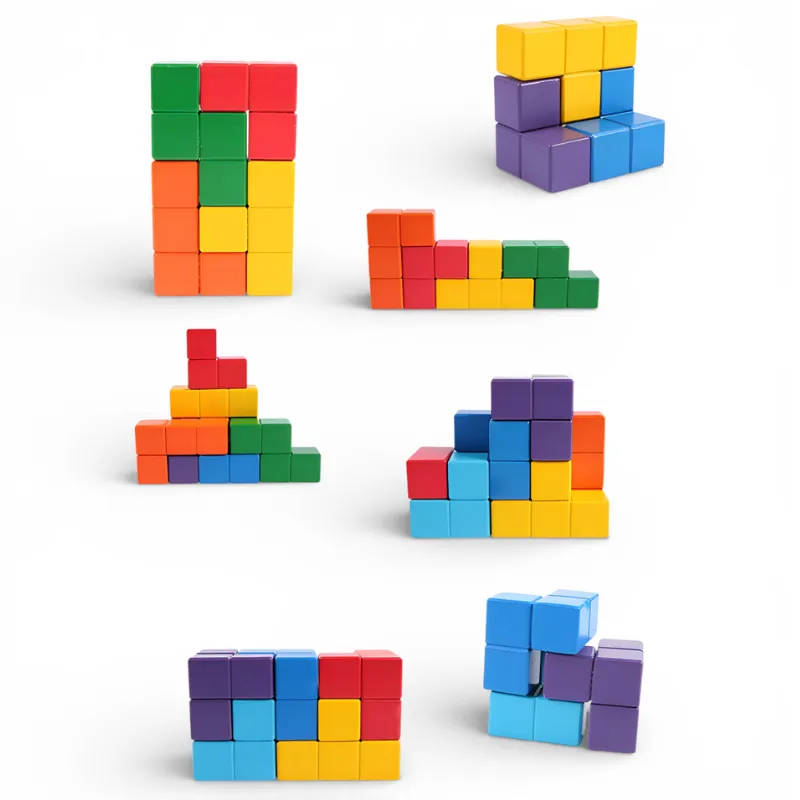 Holz Tetris Würfelpuzzle Montessori Sinnes-Spielzeug für Kinder
